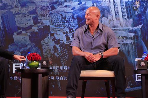한 기자가 영화 '샌 안드레아스' 감독 브래드 페이튼에게 작품에 대해 공격적인 질문을 던졌고, 페이튼 감독이 이에 '열혈 응수'로 나서자 존슨은 장난스러운 표정으로 중간 중간 감독의 팔을 간질이며 말리는 듯한 행동을 보였다.