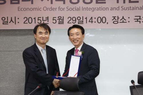 (서울=연합뉴스) 성혜미 기자 = 한국질서경제학회(회장 김강식)는 29일 오후 국회의원 회관에서 개최한 정책 심포지엄에서 '2015년 윤리경영대상'을 한국공항공사와 BMW코리아에 시상했다.