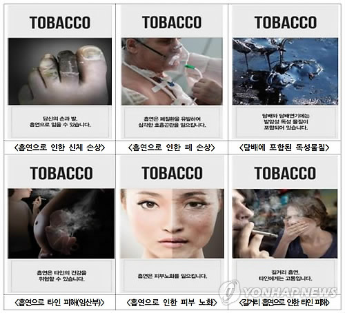 법 개정안에 따르면 내년 12월께부터 담배 제조사는 담뱃갑 앞뒷면 면적의 50% 이상을 경고그림과 경고문구로 채우고 특히 이 중 경고그림의 비율이 30%가 넘도록 해야 한다.