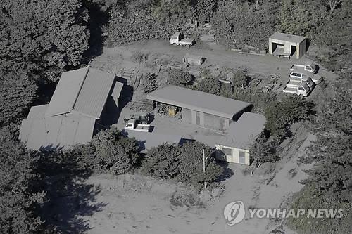 | △ 폭발적 분화가 일어난 일본 가고시마현 구치노에라부지마 섬 신다케 인근의 건물과 자동차들이 29일 온통 화산재로 뒤덮여 있다.(교도/AP=연합뉴스) |