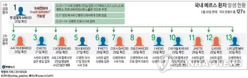 30일 현재 메르스 환자 수는 12번째 환자 L(49·여)씨를 간병하던 남편의 메르스 감염이 추가로 확인돼 모두 13명으로 늘었다.