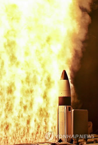| △ In this Thursday, April 14, 2011 photo released by the Missile Defense Agency, a Standard Missile-3 (SM-3) is launched from the USS O�Kane in a joint Missile Defense Agency and U.S. Navy test conducted at Hickam Air Force Base, Hawaii. The SM-3 successfully intercepted a target missile launched from the Reagan Test Site, located on Kwajalein Atoll in the Marshall Islands. (AP Photo/Missile Defense Agency courtesy of NAVAIR) |