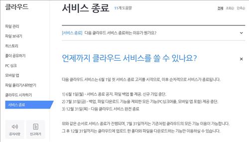 최종 서비스 종료일은 12월 31일이며 그전까지 기존 사용자들에게는 PC 파일 백업 전용 툴을 제공한다.