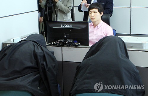 | △ 中 조직서 기술 배워 시민 등친 보이스피싱 일당 (청주=연합뉴스) 전창해 기자 = 충북경찰청 지능범죄수사대는 2일 중국 보이스피싱(전화금융사기) 조직으로부터 사기 수법을 배워 국내에서 서민들을 등친 한국인 일당이 무더기로 적발했다. 사진은 경찰 조사를 받는 피의자들. 2015.6.2 jeonch@yna.co.kr |