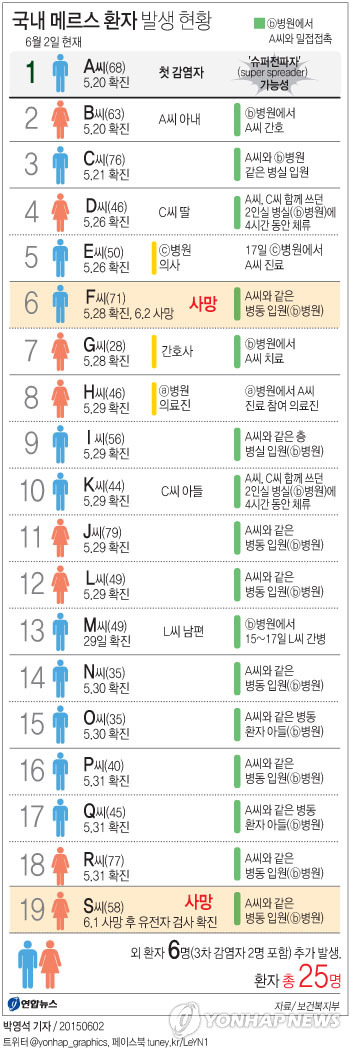 이후에도 격리되지 않은 채 25~27일 모 병원에 내원했고, 28~30일에는 ⓓ병원 6인실에 입원하면서 같은 병실 환자에게 메르스를 감염시켰다.