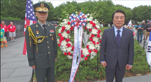 김 이사장은 또 이날 워싱턴 D.C.내 한국전 참전용사 기념비 앞에서 신경수 국방무관을 비롯한 주미대사관 및 언론 관계자들과 함께 참배했다.