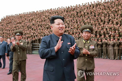 | △ 김정은, 원산 고아원 완공 치하하며 군인들과 기념사진 (서울=연합뉴스) 김정은 북한 국방위원회 제1위원장이 강원도 원산의 고아원인 육아원, 애육원이 완공된 것을 치하하며 군인 건설자들과 기념사진을 찍었다고 노동신문이 3일 보도했다. 이날 기념사진 촬영에는 김정은 제1위원장의 여동생인 김여정 노동당 부부장도 참석했다. 사진은 군인들 앞에서 웃으며 박수를 치는 김정은 제1위원장의 모습. |