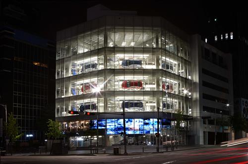 현대차는 모터스튜디오 건물 3층에서 5층까지 3개층 창가의 공중에 매달려 있는 전시작품 '카 로테이터'를 기존 쏘나타 차량에서 3층은 제네시스, 4층은 쏘나타, 5층은 i40로 교체했다.