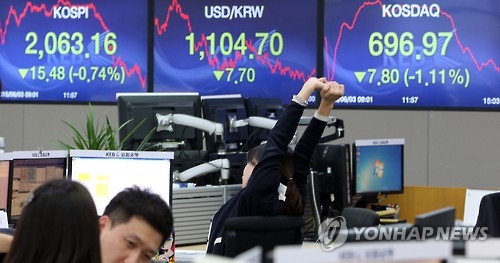 엔저·메르스 악재 연일 '맹위'…코스피 2,060선 후퇴
