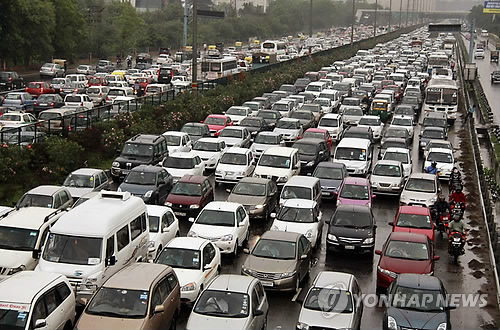 | △ 인도 뉴델리 교외 델리-구르가온 도로 (AP=연합뉴스 자료사진) |