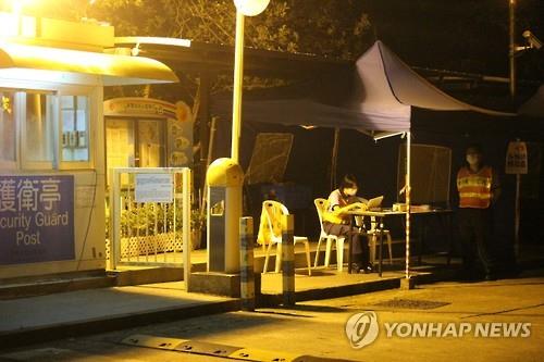 | △ (홍콩=연합뉴스) 최현석 특파원 = 2일(현지시간) 메르스 감염 의심자들이 격리된 맥리호스부인 휴양촌 앞을 경찰관과 민중안전복무대 대원, 휴양촌 보안요원들이 3중 철통 경비 서고 있다. 경비견 두마리도 눈에 띄었지만, 지나가는 사람이 한 명도 없어 적막감이 감돌았다. 2015.6.3 |
