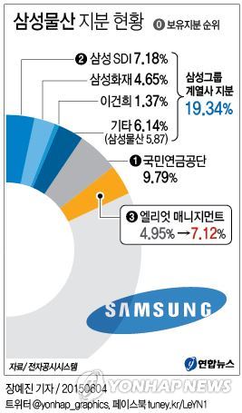 (서울=연합뉴스) 김수진 기자 = 제일모직[028260]과 삼성물산의 합병에 대해 부정적인 의견을 밝힌 미국계 헤지펀드 엘리엇 매니지먼트는 종전부터 5%에 가까운 삼성물산 지분을 보유하고 있다가 최근 지분을 늘린 것으로 확인됐다.