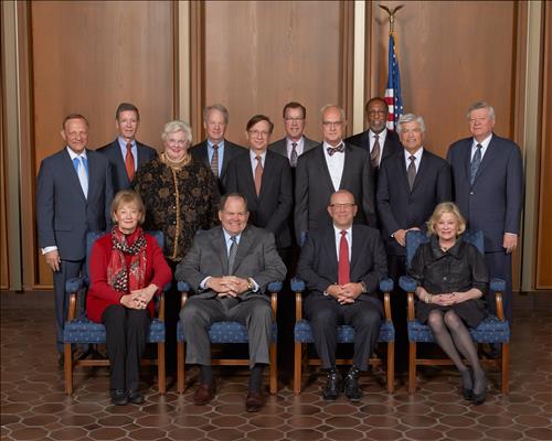 | △ 북미 최대 종합보험사 스테이트팜 이사진. 현직 CEO 에드웨드 B.러스트 주니어(앞줄 왼쪽 두번째)와 신임 CEO 마이클 팁소드(세번째)가 나란히 앉아있다. <<스테이트팜 홈페이지>> |