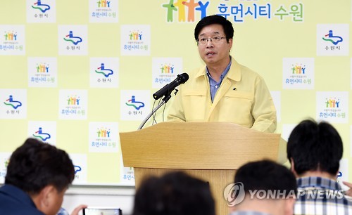 염태영 수원시장은 이날 오후 수원시청 2층 브리핑실에서 기자회견을 열고 "오늘 9시 50분 수원시민 1명이 메르스 확진 판정을 받았다"며 "수원에서 최초 메르스 환자가 나온 만큼 다중집합 행사 취소 등 대응체계를 공고히 하겠다"고 밝혔다.