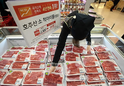 | △ 돼지 삼겹살 가격이 고공행진을 하자 대체 식품으로 호주산 쇠고기가 인기를 끌고 있다. |