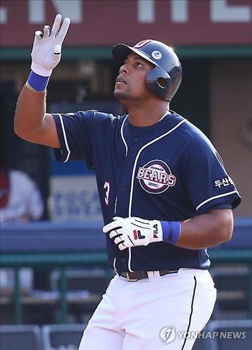 (서울=연합뉴스) 김승욱 기자 = 두산 베어스가 새로 영입한 외국인 타자 데이빈슨 로메로(29)가 한국 무대 세 번째 경기에서 1·2호 홈런을 터뜨렸다.