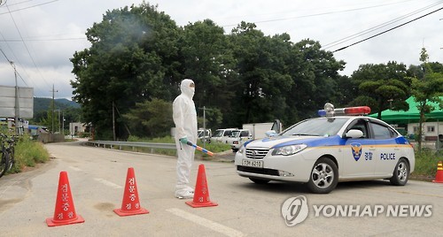 | △ 출입 통제된 메르스 양성반응 환자 발생마을 (순창=연합뉴스) 백도인 기자 = '중동호흡기증후군(메르스)' 양성반응 환자가 발생한 전북 순창군 A 마을의 출입을 5일 경찰과 방역 담당자들이 통제하고 있다. 전북도는 이 마을에 사는 B(72·여)씨가 1차 검진에서 메르스 양성 판정을 받자 확산을 막기 위해 통제에 들어갔다. 국내에서 메르스 확산 방지를 위해 마을이 통째로 출입 통제된 것은 처음으로 알려졌다. 2015.6.5 doin100@yna.co.kr |