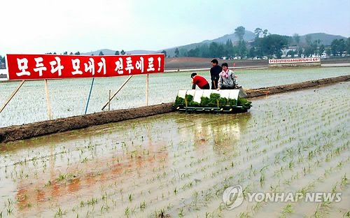 | △ 북한의 모내기 (평양 조선중앙통신=연합뉴스) 북한 강서구역 청산리에서 모내기가 시작됐다고 12일 조선중앙통신이 보도했다. 2015.5.12 seephoto@yna.co.kr |
