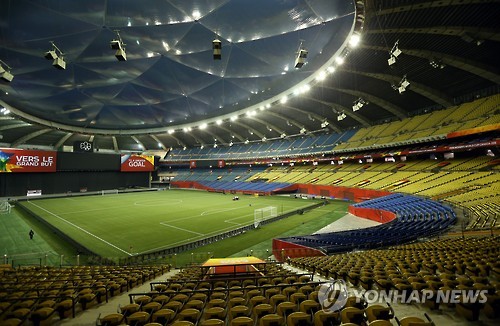 | △ 여자축구 '기적' 이뤄낼 몬트리올 올림픽스타디움 (몬트리올=연합뉴스) 신준희 기자 = 윤덕여 감독이 이끄는 한국 여자 축구 대표팀이 2015 캐나다 여자 월드컵 조별리그 E조 1, 2차전을 치를 캐나다 몬트리올 올림픽 스타디움. 오는 10일 오전 8시(한국시간) 브라질과의 1차전에 이어 코스타리카와의 2차전도 14일 같은 시간 이곳에서 열린다. 2015.6.8 hama@yna.co.kr |