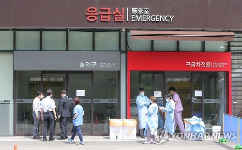 | △ 폐쇄된 삼성서울병원 응급실 (서울=연합뉴스) 이정훈 기자 = 정부가 메르스 병원명단을 공개한 7일 오전 서울 일원동 삼성서울병원의 폐쇄된 응급실 출입구 앞으로 병원 관계자들이 분주하게 이동하고 있다. |