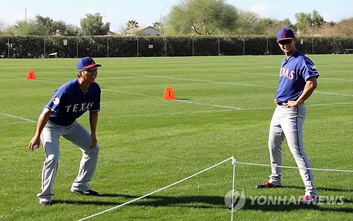 | △ 미국프로야구 텍사스 레인저스에서 뛰던 시절의 후지카와 규지(왼쪽). 오른쪽은 같은 일본인 투수 다르빗슈 유. (연합뉴스 자료사진) |