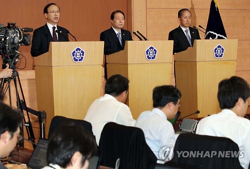 | △ 5·24조치 5년 (서울=연합뉴스) 2010년 5월 24일 현인택 당시 통일부 장관(왼쪽)과 유명환 외교부 장관, 김태영 국방장관이 도렴동 정부청사 별관에서 합동기자회견을 열고 대북 대응책을 발표하고 있다. 그해 3월 26일 천안함 피격사건이 발생하자 정부는 민·군 합동조사단의 조사를 거쳐 북한의 소행으로 결론 내리고 북한 선박의 우리해역 운항 불허, 남북교역 중단, 개성공단과 금강산 제외 방북 불허, 북한에 대한 신규투자 불허, 인도적 지원 제외 대북지원 사업 보류 등을 골자로 한 5·24 조치를 발표했다. 2015.5.20 << 연합뉴스DB >> photo@yna.co.kr |