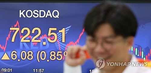 (서울=연합뉴스) 장하나 기자 = 코스닥 지수가 9일 나흘째 상승 랠리를 이어가며 7년 6개월 만에 720선을 돌파했다.