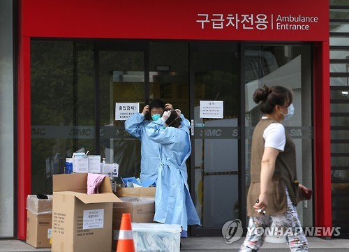 | △ 삼성서울병원 임신부 첫 메르스 환자 소식에 (서울=연합뉴스) 임헌정 기자 = 삼성서울병원에서 중동호흡기증후군(메르스) 임신부 첫 확진 환자가 발생한 가운데 9일 오후 서울 일원동 삼성서울병원 응급실에서 의료진이 분주하게 움직이고 있다. |