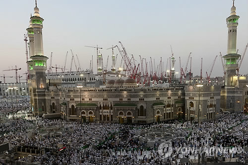 | △ 지난해 10월 이슬람 교도들의 성지순례(하지)를 위해 성지인 사우디아라비아 메카의 대 모스크 밖에 모인 무슬림들이 기도를 올리고 있다. (AP=연합뉴스 자료사진) |