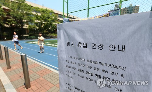 (세종=연합뉴스) 노재현 기자 = 중동호흡기증후군(메르스) 여파로 휴업하는 유치원과 학교가 전국에 2천700곳을 넘어섰다.