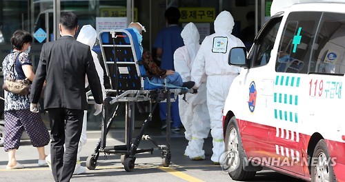 | △ 병원으로 들어가는 메르스 의심환자 (서울=연합뉴스) 홍해인 기자 = 지난 10일 오후 중동호흡기증후군(메르스) 치료병원으로 지정된 서울 동작구 신대방동 보라매병원에 의심환자가 도착해 환자 대기실에서 상태를 확인한 뒤 병원 내로 옮겨지고 있다. |