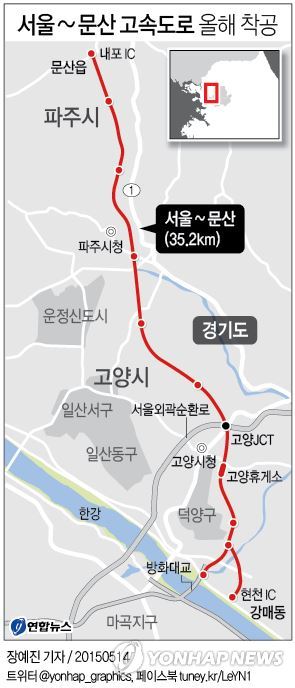 | △ <그래픽> 서울~문산 고속도로 올해 착공(연합뉴스 자료) |