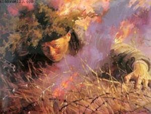 | △ '항일전쟁 영웅' 추사오윈의 전사과정을 형상화한 그림. <<중국 포털사이트 바이두 캡처>> |