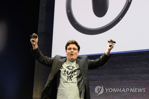 팔머 러키 오큘러스 창립자는 이날 무대에서 양손을 이용한 신개념 입력 도구 '오큘러스 터치'를 공개했다.