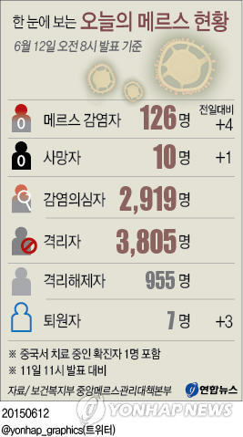 (서울=연합뉴스) 하채림 기자 = 중동호흡기증후군(메르스) 감염자가 4명 추가돼 총 126명으로 늘었다.