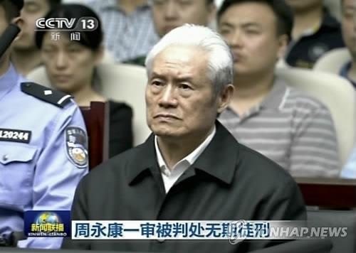 | △ 재판을 받고 있는 '공안황제' 저우융캉 |