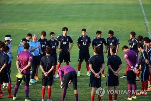 | △ 미얀마전에 대비해 훈련에 나선 축구 대표팀.<<연합뉴스 자료사진>> |