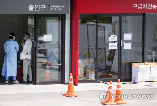 | △ 삼성서울병원, 병원 부분 폐쇄 (서울=연합뉴스) 윤동진 기자 = 14일 오전 서울 강남구 삼성서울병원 응급실 건물에서 병원 관계자들이 업무를 보고 있다. 이날 삼성서울병원에서 열린 기자회견에서 송재훈 병원장은 "이날부터 신규 외래·입원 환자를 한시적으로 제한하며 응급수술을 제외하고는 수술과 응급진료도 한시 중단한다"고 밝혔다. 2015.6.14 mon@yna.co.kr |