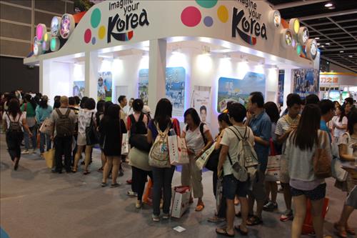 이날 박람회장 한국 홍보관은 메르스 확산에 따른 우려에도 한국을 여행하려는 홍콩과 중국인들로 인산인해를 이뤘다.