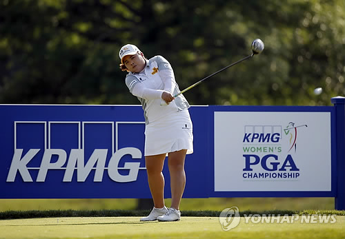 | △ 박인비, 메이저 3연패 '세번 째' 선수 (해리슨<뉴욕주> AP=연합뉴스) 14일(현지시간) 미국 뉴욕주 해리슨 소재 웨스트체스터 컨트리클럽의 미여자프로골프(LPGA) 투어 KPMG 위민스 PGA챔피언십 마지막날 17번홀에서 박인비(27·KB긍융그룹)가 티샷하고 있다. 합계 19언더파 273타를 적어낸 박인비는 동반플레이를 한 김세영(22·미래에셋)을 5타차로 따돌리고 2013년과 2014년에 이어 이 대회에서 3연패를 달성했다. 역대 LPGA 투어에서 메이저대회 3연패를 달성한 세 번째 선수로 기록됐다. |