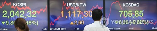 이날 코스피는 전날보다 9.85포인트(0.48%) 내린 2,042.32로 마감했다.