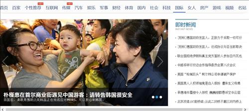 공산당기관지 인민일보의 자매지인 환구시보(環球時報) 인터넷판인 환구망(環球網)과 중국의 최대 포털사이트 바이두(百度) 등은 이날 박근혜 대통령이 최근 메르스 영향으로 직격탄을 맞은 동대문 상가를 찾아 서울시민과 격의 없이 인사를 나누고, 유커(遊客·중국인 관광객)들에게 '안전한 한국'을 강조하는 장면을 국제뉴스 주요소식으로 게재했다.
