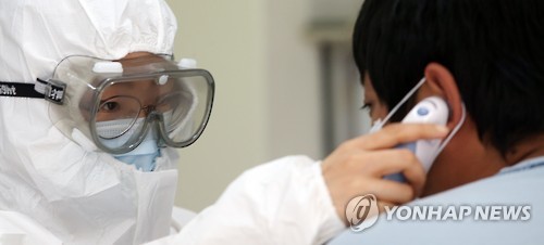 | △ "체온을 측정하겠습니다" (오산=연합뉴스) 신영근 기자 = 낮 기온이 30도를 훌쩍 넘긴 10일 오후 경기도의 한 병원에서 방역복에 고글을 착용한 의료진이 중동호흡기증후군(메르스) 확산을 막기 위해 병원 내방객을 대상으로 체온을 측정하고 있다. 2015.6.10 drops@yna.co.kr http://blog.yonhapnews.co.kr/geenang |