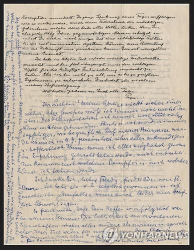 (서울=연합뉴스) 강건택 기자 = '상대성 이론'으로 유명한 천재 물리학자 알베르트 아인슈타인(1879∼1955)이 생전에 남긴 미공개 편지 27편이 경매에서 총 42만625달러(약 4억7천만원)에 낙찰됐다고 CNN 방송이 15일(현지시간) 보도했다.