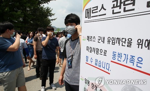 | △ "입소 장정 이외에는 보충대 출입 금지" (춘천=연합뉴스) 이재현 기자 = 16일 강원 춘천시 신북읍 102보충대로 입소하는 장정의 동반 부모와 친구 등이 부대 내 입장 불허 방침에 따라 발길을 돌리고 있다. 부대 측은 중동 호흡기증후군(메르스) 확산 방지 차원에서 입영 축하행사를 취소했고, 동반한 부모 등의 부대 내 입장도 허용하지 않았다. 2015.6.16 jlee@yna.co.kr |