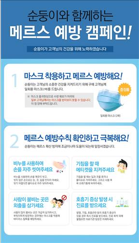 (서울=연합뉴스) 고유선 기자 = 아기 물티슈 전문업체 순둥이는 구매 고객에게 일회용 마스크를 증정하는 중동호흡기증후군(메르스) 예방 캠페인을 벌인다고 17일 밝혔다.