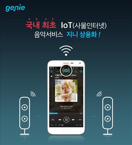 안드로이드 기반의 지니 앱 음악 재생 화면에서 동일한 와이파이망에 있는 무선스피커를 최대 10개까지 가동할 수 있는 이 서비스를 이용하면 집안 곳곳에 흩어져 있는 여러 음향 기기를 제어해 다양한 음악을 연출할 수 있다.