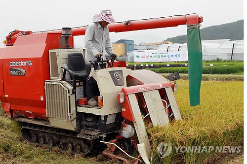| △ 크롤러 바퀴가 달린 콤바인(연합뉴스 자료사진) |