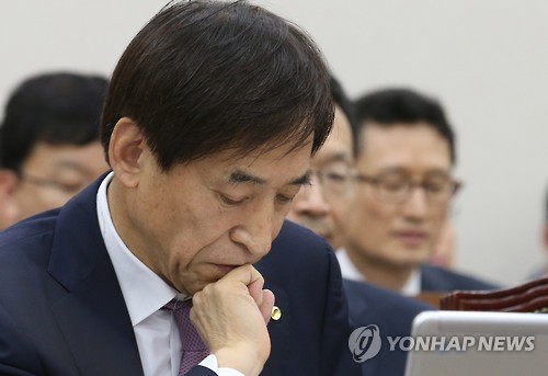 | △ 자료 보며 생각에 잠긴 한은 총재 (서울=연합뉴스) 도광환 기자 = 17일 오전 국회에서 열린 기획재정위원회에서 이주열 한국은행 총재가 회의 자료를 숙독하고 있다. |