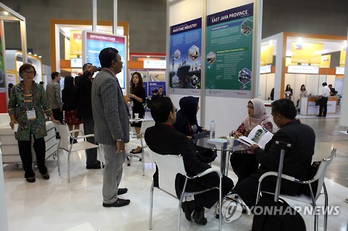 | △ '해외 투자정보 한자리에'…킨텍스 박람회 개막 (고양=연합뉴스) 김승두 기자 = 코트라는 17일 산업통상자원부와 함께 경기도 고양시 킨텍스에서 해외 투자 박람회인 '2015 대한민국 해외진출 종합대전(KOIF: Korea Overseas Investment Fair & Conference)'을 개막했다. 이날 행사장의 인도네시아 부스에서는 관계자들이 국내 중소·중견 기업들의 상담을 기다리고 있다. 2015 6.17 kimsdoo@yna.co.kr |